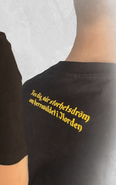 ASSÅ VA FAN HAR DOM GJORT NU DÅ?? NÅGON HJÄLTE HAR GJORT VÄRLDENS JÄVLA KUNG T-SHIRT!!! Svart som natten över Råsunda, guldtexten som SKRIKER ut det vi alla tänker när vi stirrar ut över Norra – RIS DIG, VÅR STORHETSDRÖM OM HERRAVÄLDET I NORDEN!!! FATTAR NI ELLER?!?! HERRAVÄLDET I JÄVLA NORDEN. Inte bara Solna, inte bara Sverige. HELA JÄVLA NORDEN SKA LIGGA UNDER VÅRA DOJOR.